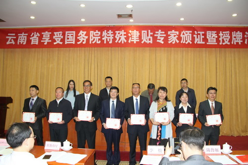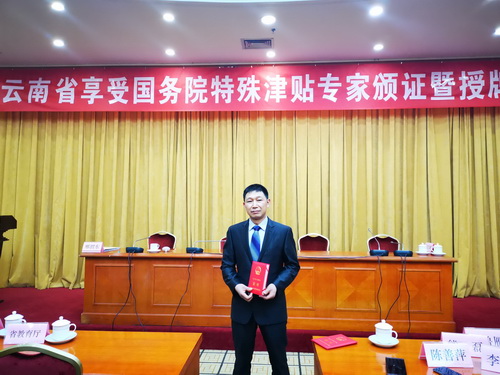 4月12日,在云南省2018年獲國務院政府特殊津貼專家頒證暨新設立專家基層科研工作站和省級博士后站授牌活動會上,老廠分公司竹葉山坑一工區采礦一隊隊長、高級技師楊勇榮獲2018年國務院政府特殊津貼。云南省人社廳黨組副書記、副廳長和江峰、副廳長邢渭東、省委組織部人才工作處處長肖峰出席活動并為2018年榮獲享受國務院政府特殊津貼的48位各行各業專家人才現場頒發證書。