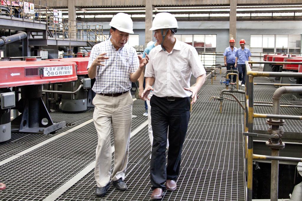 在選礦作業(yè)車間,客人們?cè)敿?xì)了解了大屯錫礦選礦的發(fā)展歷程、生產(chǎn)規(guī)模、設(shè)備流程等情況,仔細(xì)觀察了搖床的工作原理和詢問(wèn)了礦石品位等,對(duì)大屯錫礦信息化管理、精細(xì)的選礦技術(shù)及大規(guī)模的生產(chǎn)流程給予了高度評(píng)價(jià),并就安全生產(chǎn)等工作進(jìn)行交流,提出了建設(shè)性的意見(jiàn)和建議。