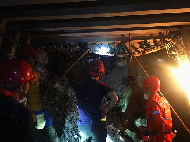 2017年11月,因遇老熊硐斷裂,巖石變化大,迎頭松散,工程一度被迫放緩,每月掘進量僅50米多米,為保障安全掘進及確保施工進度,竹葉山坑生產股技術人員積極與施工單位共同攻關,探討提高施工進度的措施辦法。經過反復論證、實踐,探索出了采用3米錨桿超前支護后,再用密集鑲支護的辦法,從而扼制了因迎頭松散阻礙施工進度的窘境。為保證施工質量,技術人員克服每次往返15千米的艱辛,勤跑現場,及時做好技術監督和技術指導,從而保障了整個工程的施工。