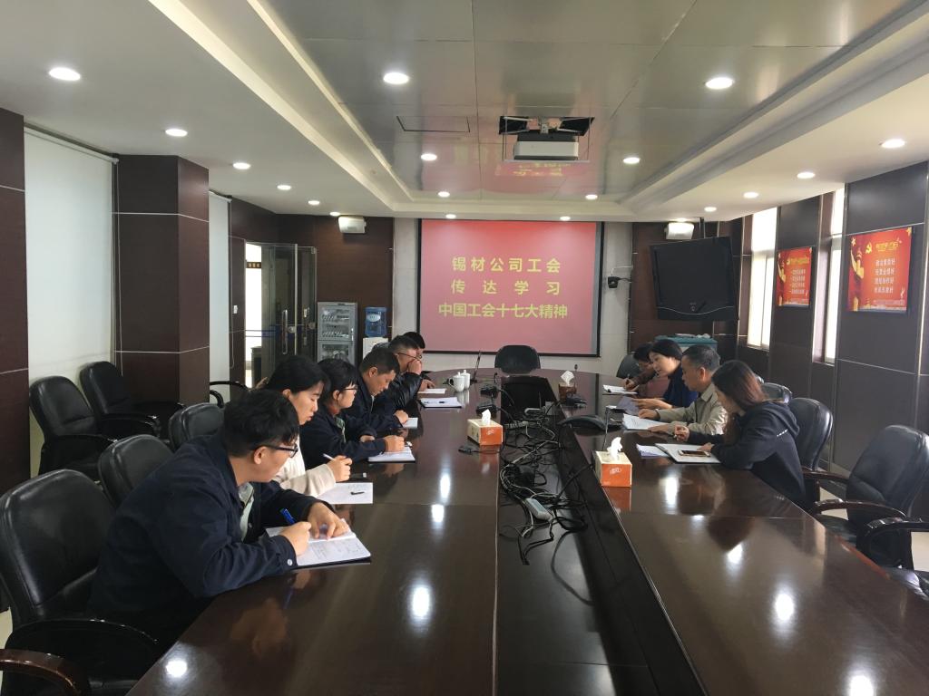 11月9日,錫材公司工會召開工會干部會議傳達學習中國工會十七大精神。