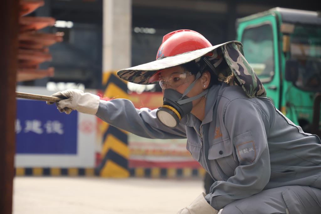 在一頂頂特殊的安全帽下,是一張張掛滿汗珠的臉龐;拉開口罩、取下護目鏡,個個都是溫柔的動人笑臉。她們每天與陰極銅板打交道,在產(chǎn)品運輸區(qū)域經(jīng)受著風吹日曬雨淋,每人佩戴的特殊安全帽因此而來,是質監(jiān)中心為了緩解每天八小時的戶外暴曬對姑娘們皮膚造成的傷害,踐行“我為群眾辦實事”承諾的體現(xiàn),也成為了銅業(yè)分公司質量監(jiān)測中心檢驗三組的標志。