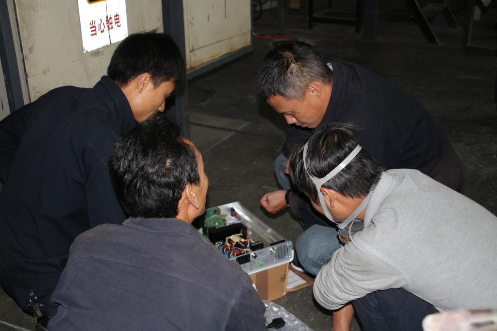 在繁忙的加班現場,不僅有井然有序的生產線,還有三兩成群的技改小組。走上前看到車間領導正召集技術骨干蹲湊在技改設備旁,仔細研究商量著技改技術問題,搬弄著設備零件的雙手已沾滿污漬,一身也是斑斑點點,這些他們都無暇顧及,只希望能通過加班加點,按時順利完成設備改造升級的艱巨任務。今年,錫材公司完成了300噸/年錫焊膏改進擴產技改和1500噸/年無鉛焊錫絲的技改;完成郴州高新材料分公司焊錫絲設備的搬遷及生產人員調配;1000噸/年焊錫粉生產線改造基本完成,3000噸/年錫(半)球完成設備采購,BGA項目生產線基礎設施建設完成,當前處于設備改造及試生產調試階段,已可以產出樣品;年產1000噸異型錫粉項目主體設備建設完成,可以開展小批量生產。
