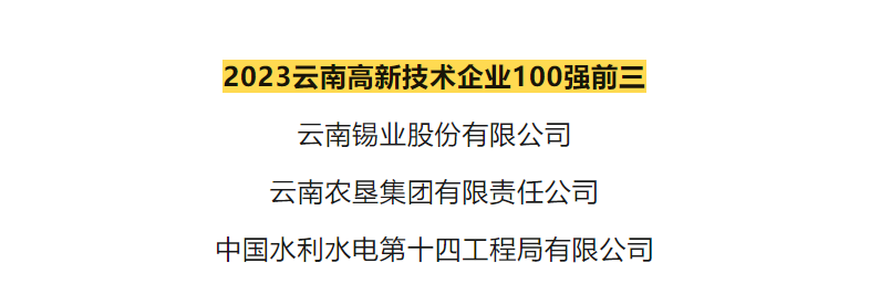 近日,由云南省企業聯合會、云南省企業家協會公開發布的“2023云南企業100強”新鮮出爐。錫業股份位列2023云南高新技術企業100強第1位,2023云南制造業企業100強第2位。
